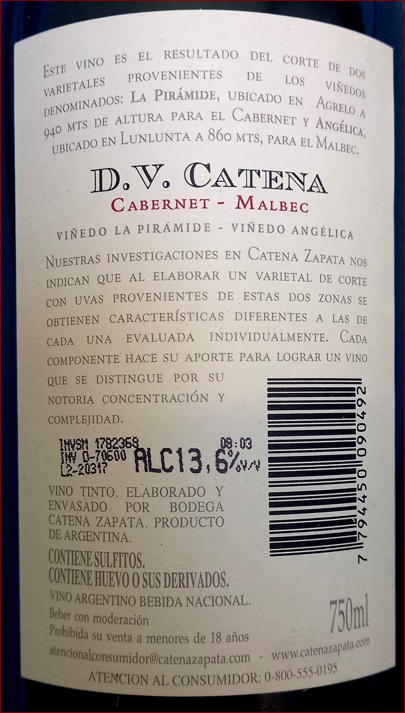 Notas de Cata: elegante y complejo, de color rojo rubí con reflejos violetas. A la nariz, intenso y concentrado, presenta notas de especias aportadas por el Cabernet Sauvignon del viñedo La Pirámide, y notas de moras maduras y ciruelas, características del Malbec del viñedo Angélica, acompañadas por vainilla, tabaco y licor aportadas por la crianza en roble. En boca, de impacto dulce y gran complejidad, con taninos integrados y redondos, de final largo y persistente.