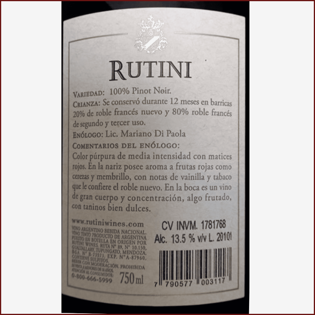 Sé el primero en valorar “Caja de 6 botellas de Rutini Pinot Noir”