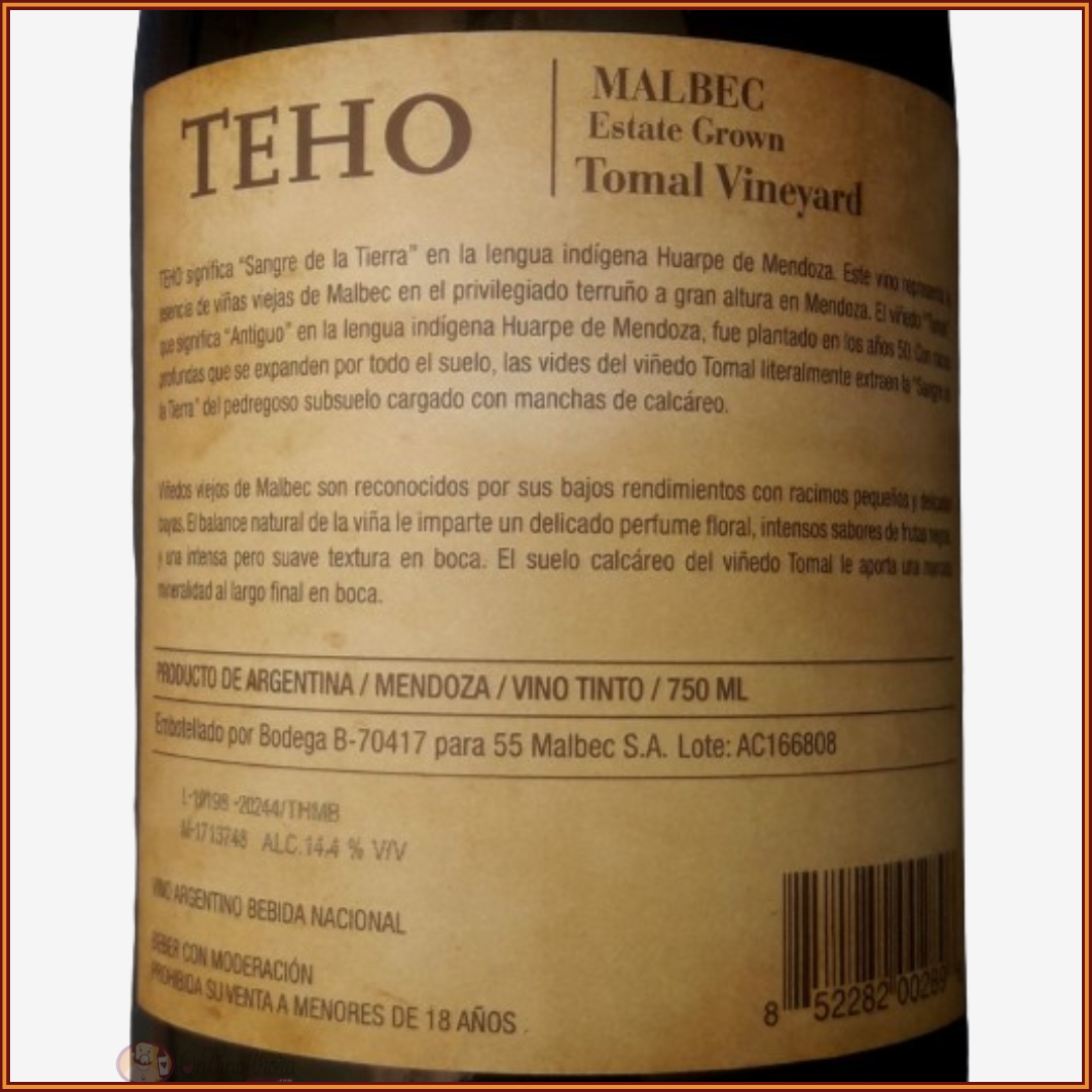Tipo de Uva: Malbec cofermentado con más de 10 variedades en pequeñas proporciones de cabernet franc, cabernet sauvignon, petit verdot, semillón y otras variedades